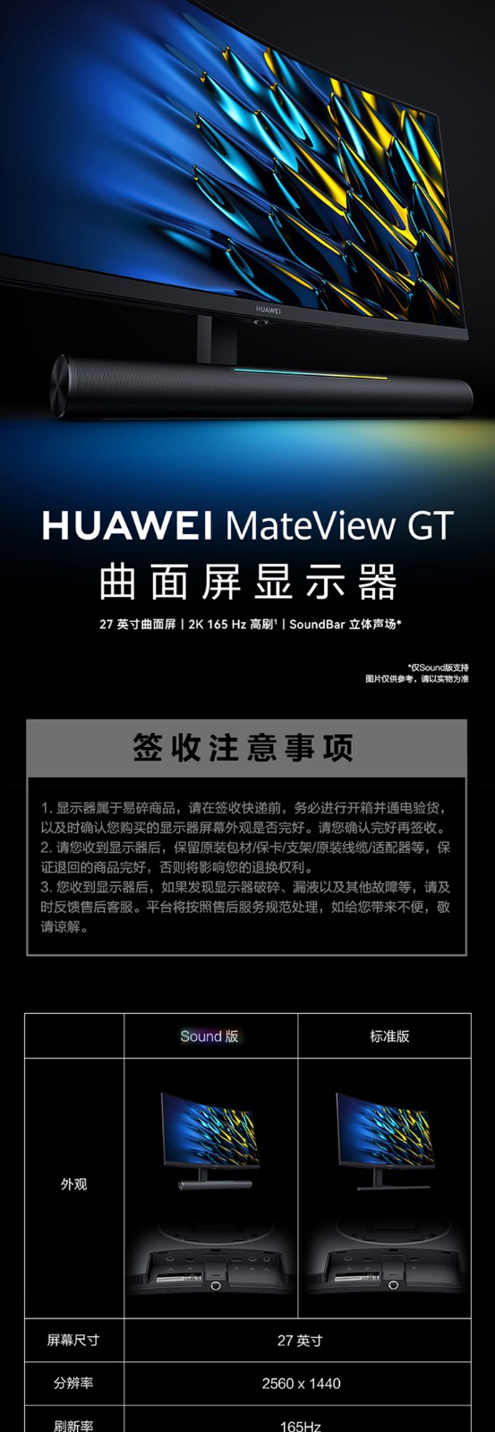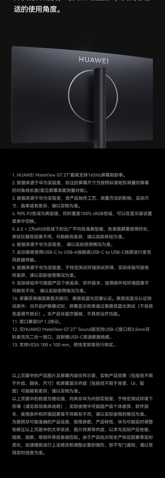 參數 [品牌] 華為 [型號] 華為MateViewGT [單位] 臺