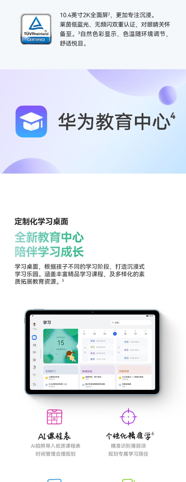 其他屬性 售后服務 全國聯(lián)保 電信設備進網(wǎng)許可證編號 17-D710-215185 存儲 內(nèi)存容量 6GB 存儲容量 6GB+64GB 6GB+128GB 顯示 分辨率 FHD 2000×1200 像素 觸摸屏類型 10點觸控電容屏 像素 前置800萬像素 屏幕尺寸 10.4英寸 后置攝像頭像素 1300萬像素 基本參數(shù) 品牌 Huawei/華為 型號 BAH4-W19 接口類型 USB Type-C,microSD卡槽,Nano-SIM卡槽(僅全網(wǎng)通版本支持) 核心數(shù) 八核心 顏色分類 前黑后曜石灰 前白后冰霜銀 前黑后海島藍 CPU主頻 4 × Cortex-A78@2.42GHz + 4 × Cortex-A55@1.8GHz 處理器構架 Cortex-A78 Based 處理器型號信息 驍龍 778G 4G 熱門功能 輕薄簡約,哈曼卡頓調音,平行視界,多重護眼,全新UI桌面,Wi-Fi 6等 操作系統(tǒng) HarmonyOS 2 網(wǎng)絡 網(wǎng)絡類型 全網(wǎng)通 WIFI