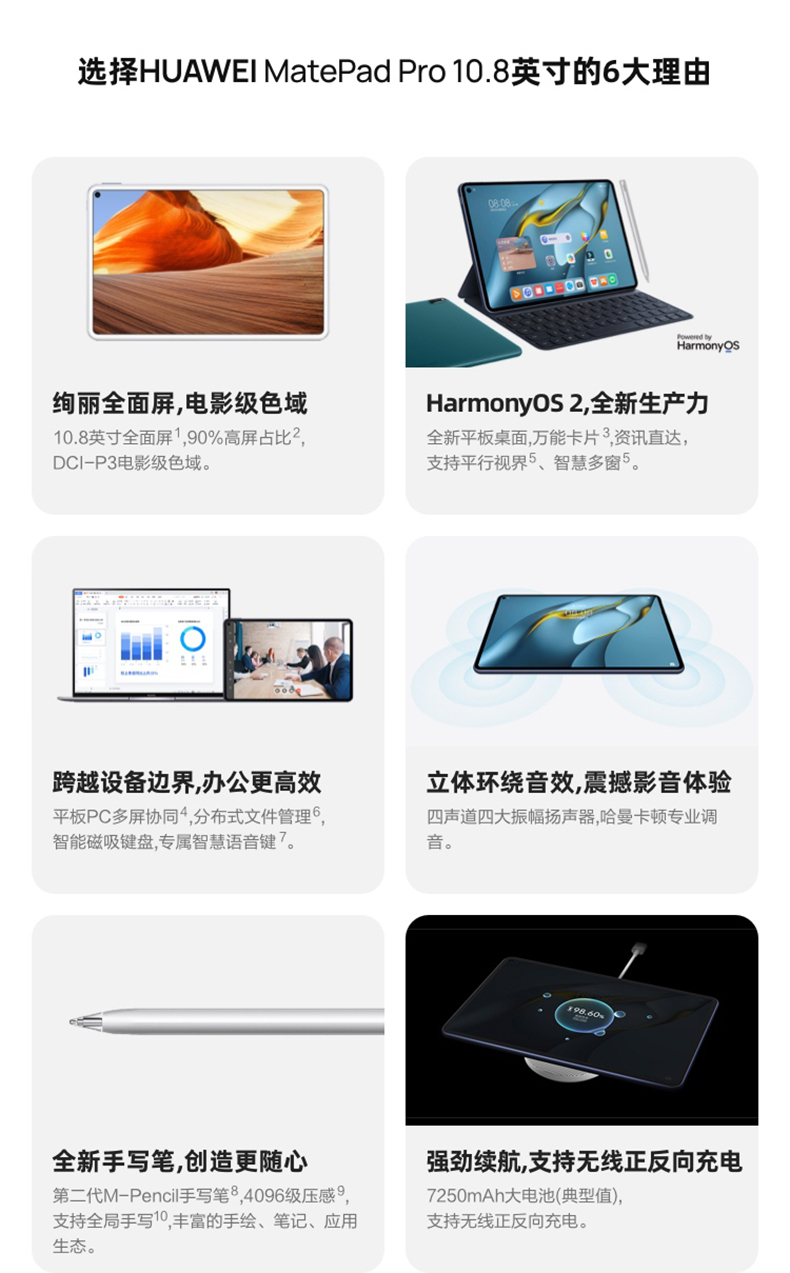 華為平板HUAWEI MatePad Pro 10.8英寸2021款鴻蒙HarmonyOS教育數(shù)碼學(xué)生電腦8GB內(nèi)存 前白后貝母白