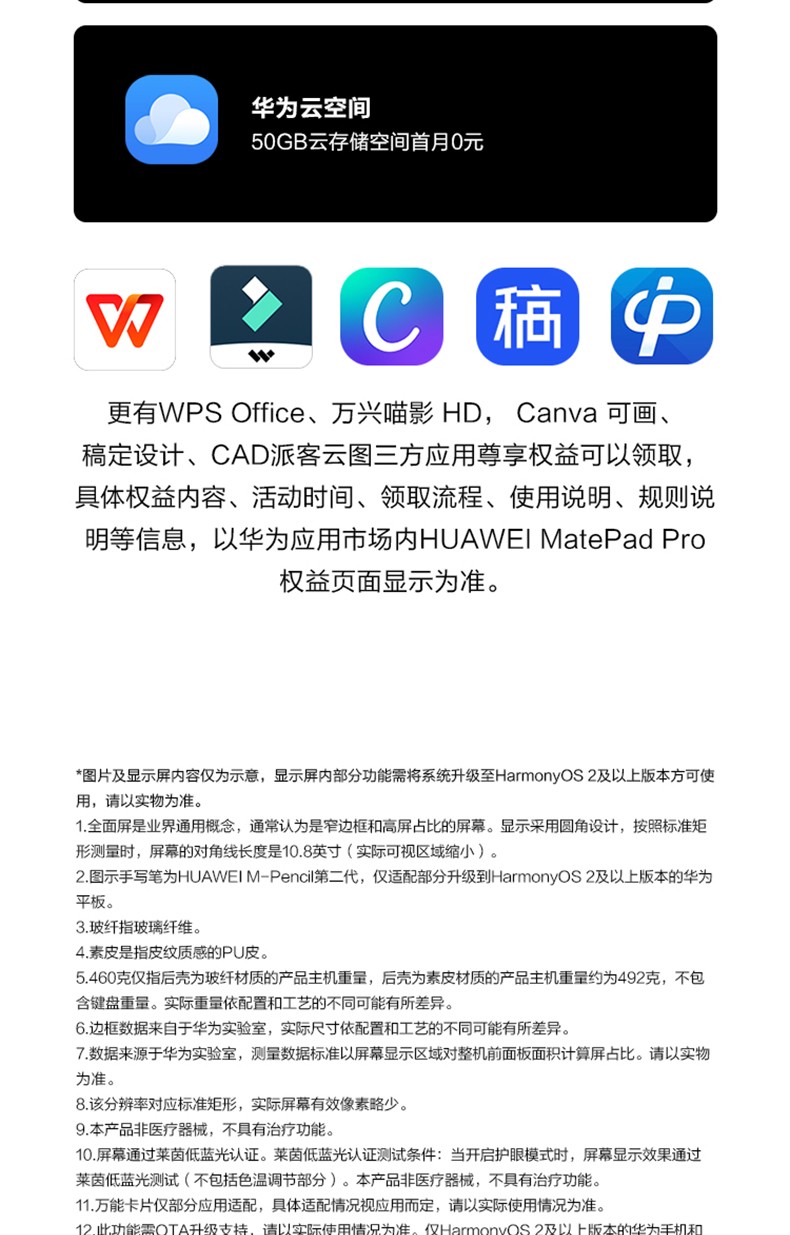 參數(shù) [品牌] 華為 [型號] 華為平板HUAWEI MatePad Pro [單位] 臺