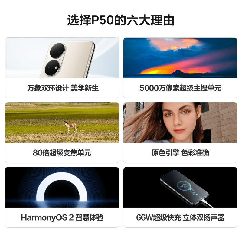規(guī)格參數(shù) 拍照功能 后置攝像頭 5000萬像素原色攝像頭+ 1300萬像素超廣角攝像頭+ 1200萬像素長焦攝像頭 攝像頭類型 四攝像頭(前一后三) 顯示 分辨率 FHD+ 2700 x 1224 像素 屏幕尺寸 6.5英寸 網(wǎng)絡(luò) 網(wǎng)絡(luò)類型 4G 全網(wǎng)通 網(wǎng)絡(luò)模式 雙卡雙待 機身詳情 款式 直板 存儲 存儲容量 8+128GB 8+256GB 基本參數(shù) 品牌 Huawei/華為 華為型號 P50 CPU核心數(shù) 八核 機身顏色 曜金黑 雪域白 可可茶金 手機類型 智能手機 操作系統(tǒng) HarmonyOS CPU品牌 高通