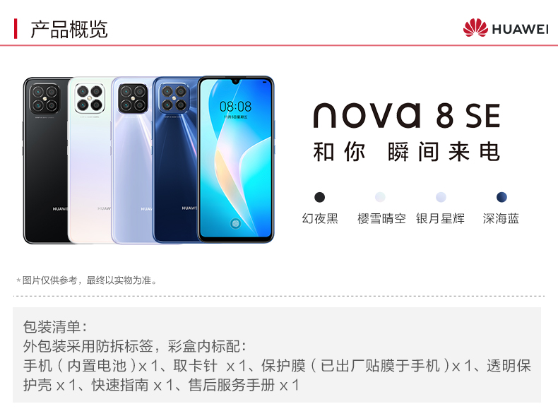 HUAWEI華為nova8SE新款華為智能手機(jī)大屏全網(wǎng)通6400萬(wàn)高清四攝66W超級(jí)快充OLED華為官方旗艦店老人機(jī) 櫻雪晴空