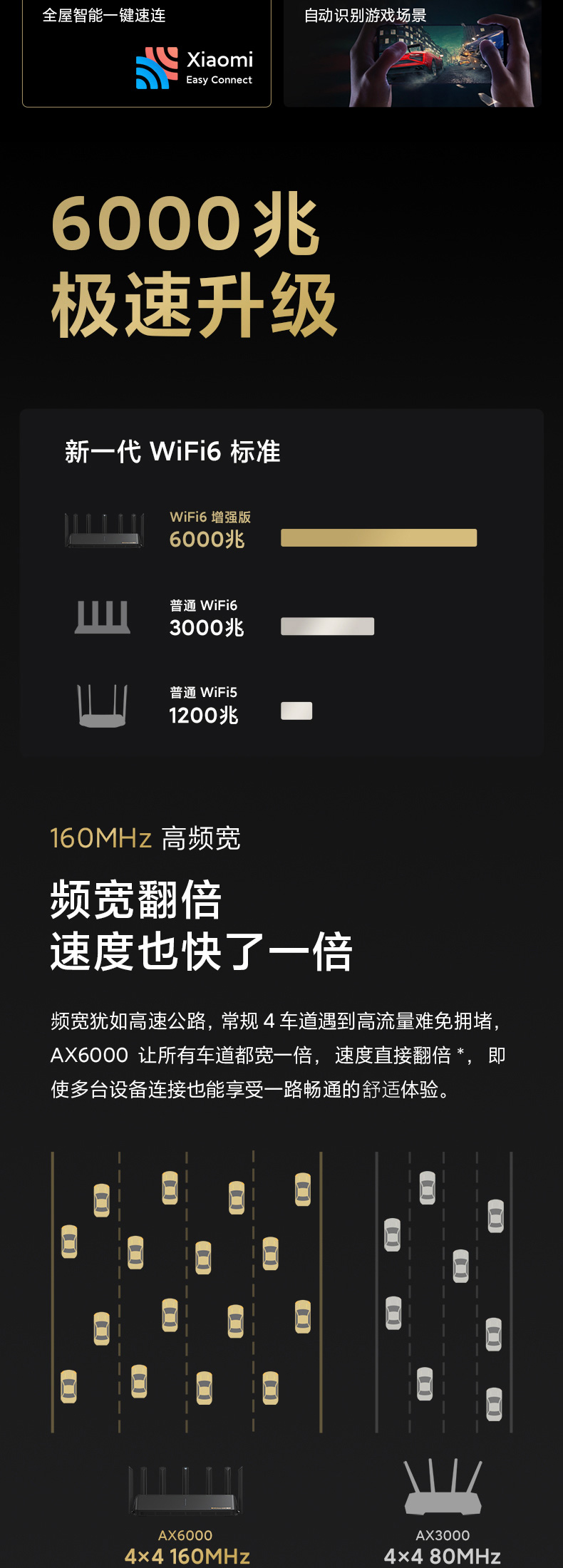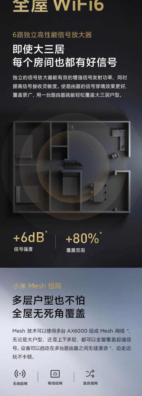 【旗艦WiFi6】小米路由器AX6000WiFi6增強(qiáng)版家用千兆端口5G雙頻無(wú)線速率Mesh路由大戶型穿墻王全屋智能6000