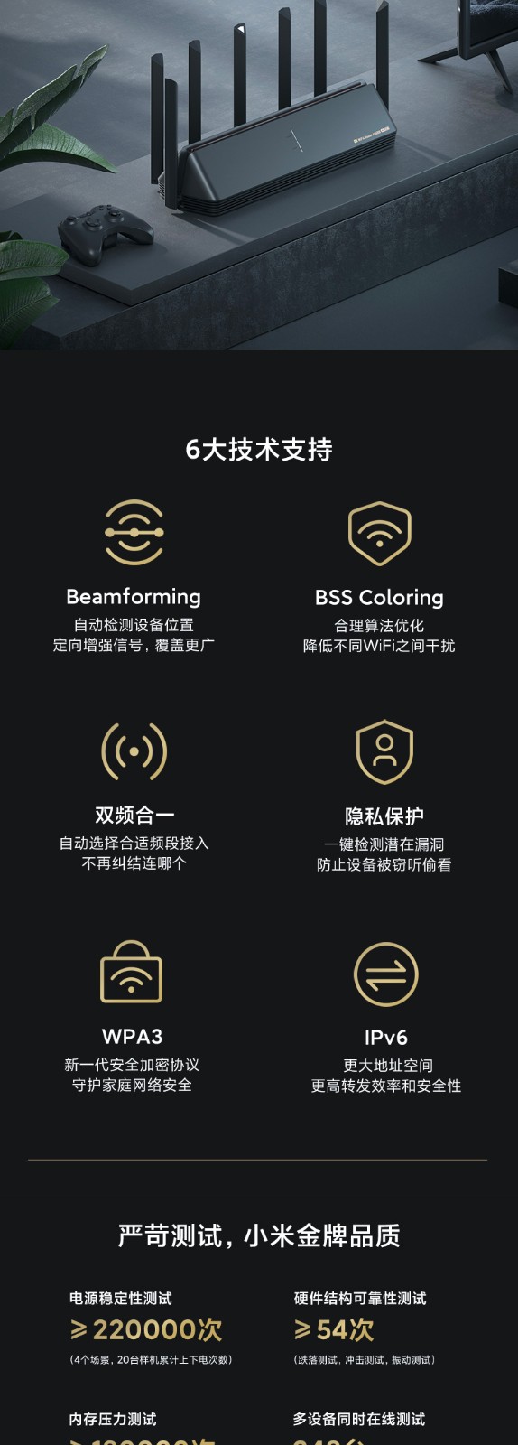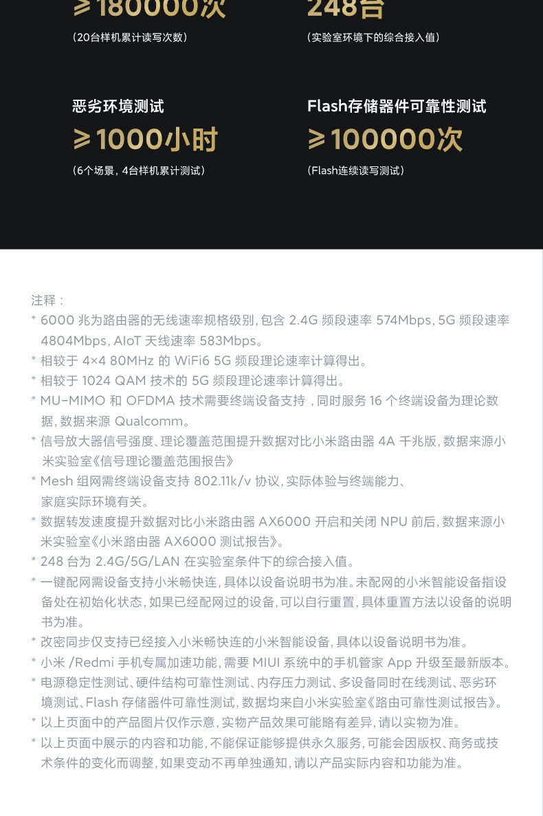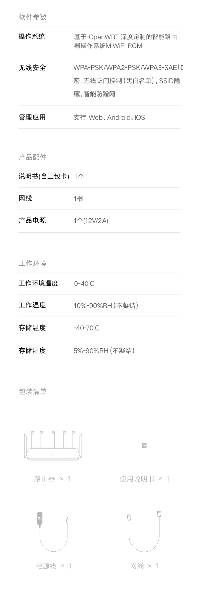 參數(shù) [品牌] 小米 [型號(hào)] 小米路由器AX9000家用千兆端口 [單位] 臺(tái)