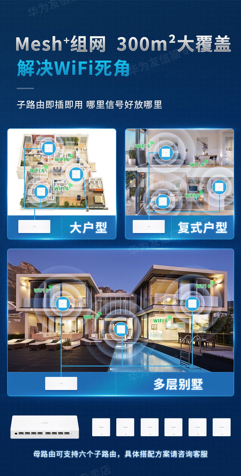華為H6路由器千兆端口ap面板家用全屋無線wifi6路由器大戶型poe鴻蒙系統(tǒng)mesh覆蓋別墅ac