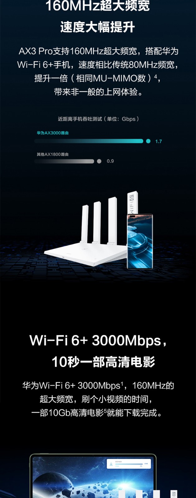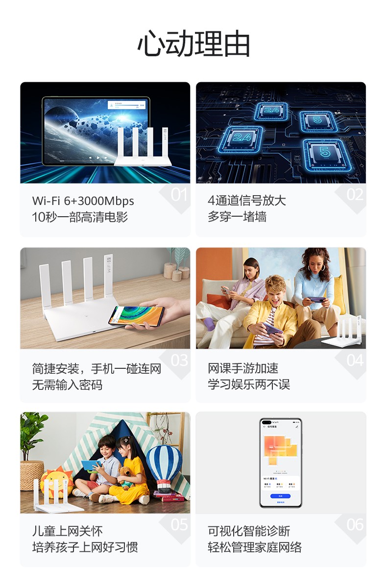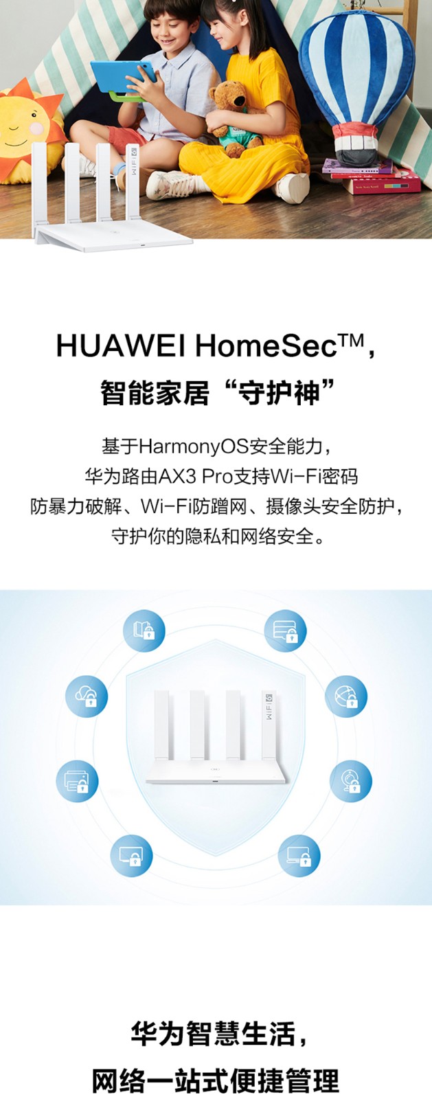 華為路由AX3 Pro wifi 6+千兆端口3000M無(wú)線速率上網(wǎng)保護(hù)碰聯(lián)網(wǎng)學(xué)生家用高速路由5G雙頻