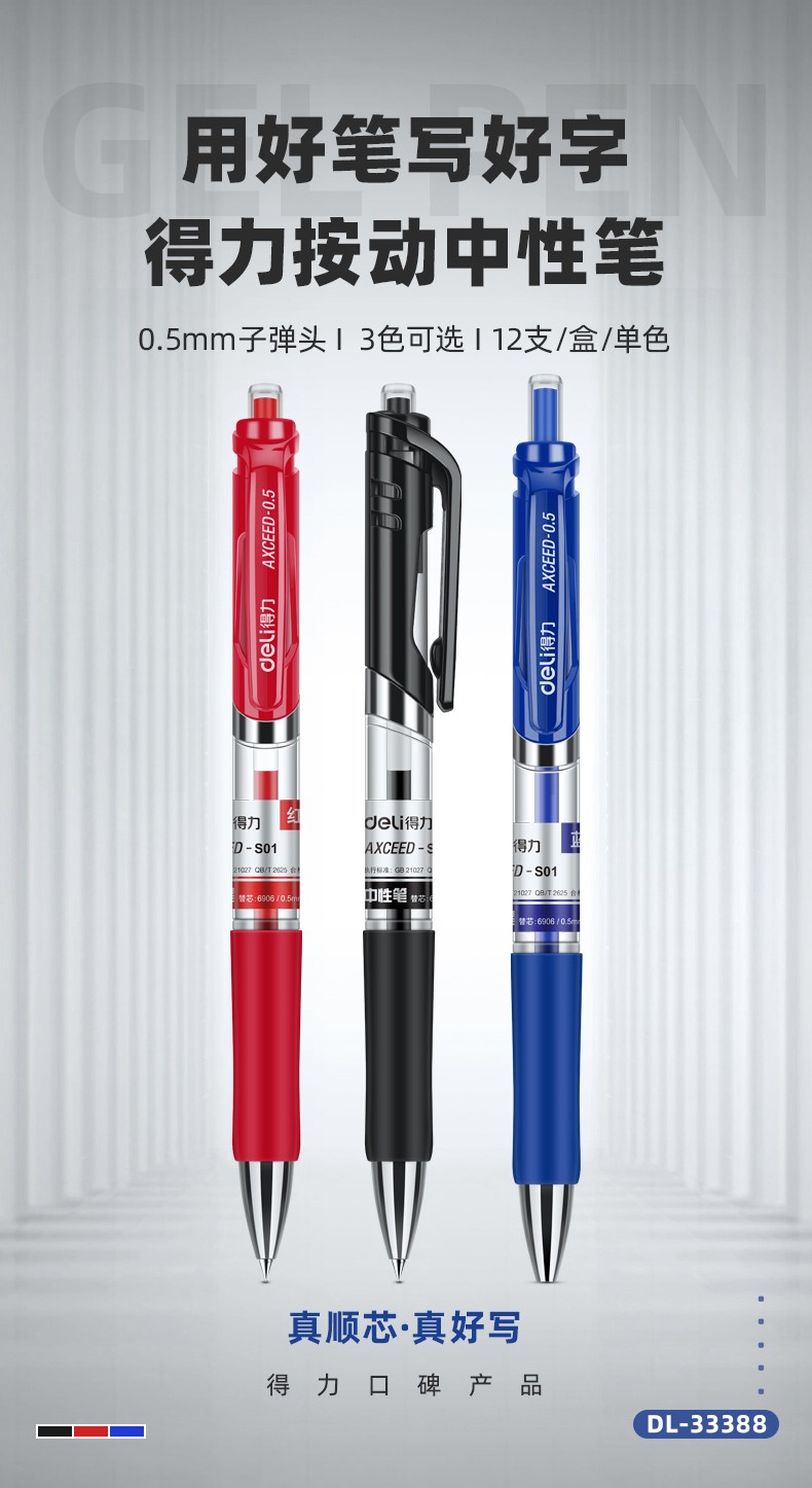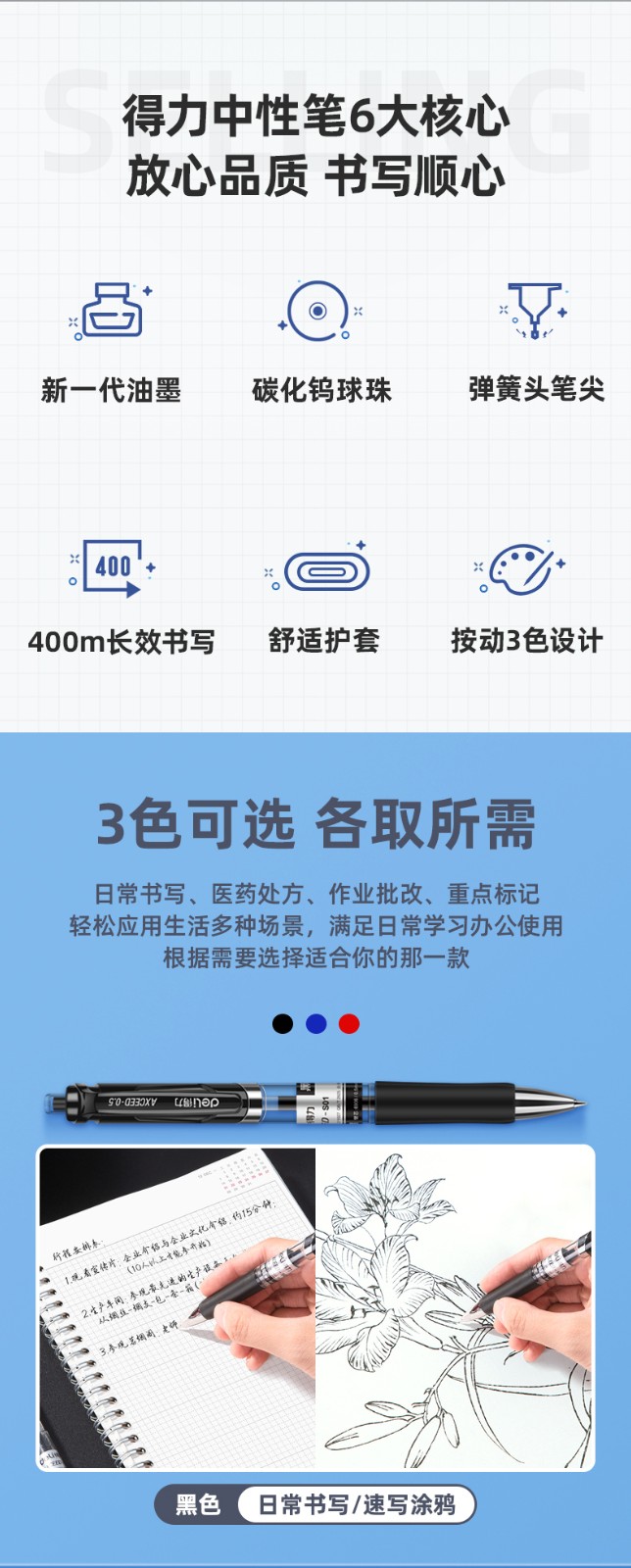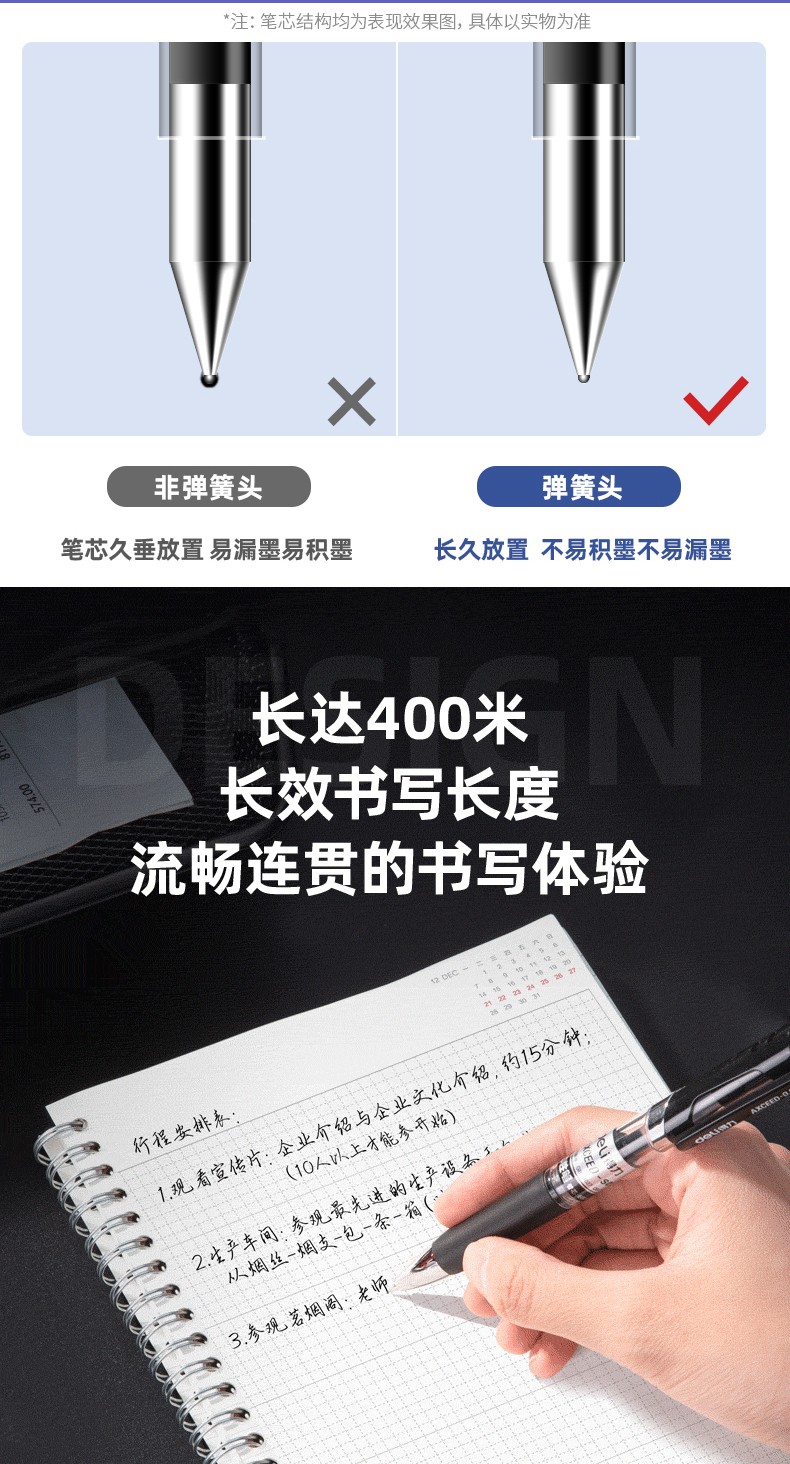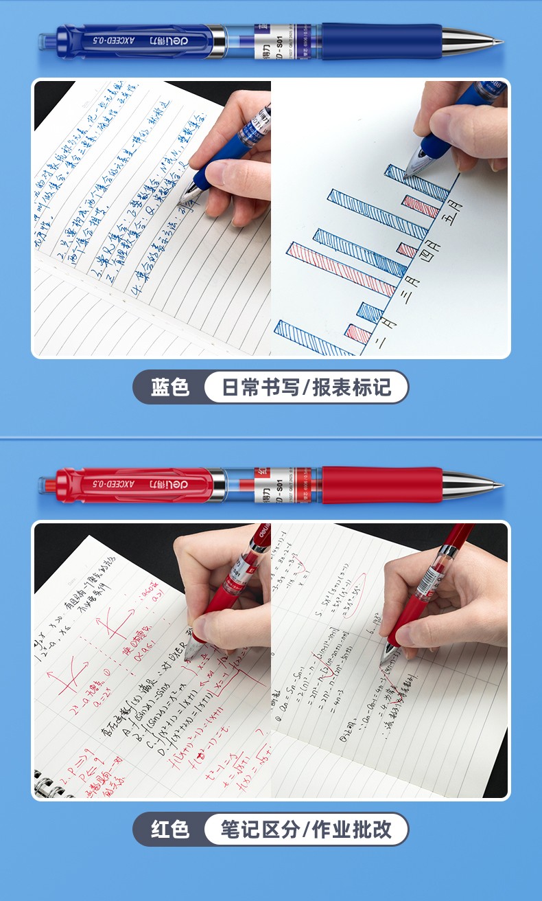 12支黑色-得力按動筆中性筆水筆學(xué)生用考試按壓式子彈頭碳素黑色水性簽字筆芯05mm圓珠筆藍(lán)黑紅筆教師辦公文具用品