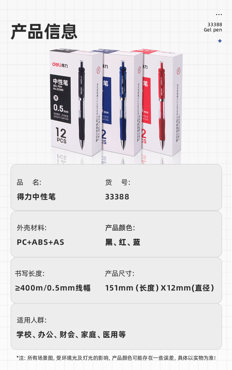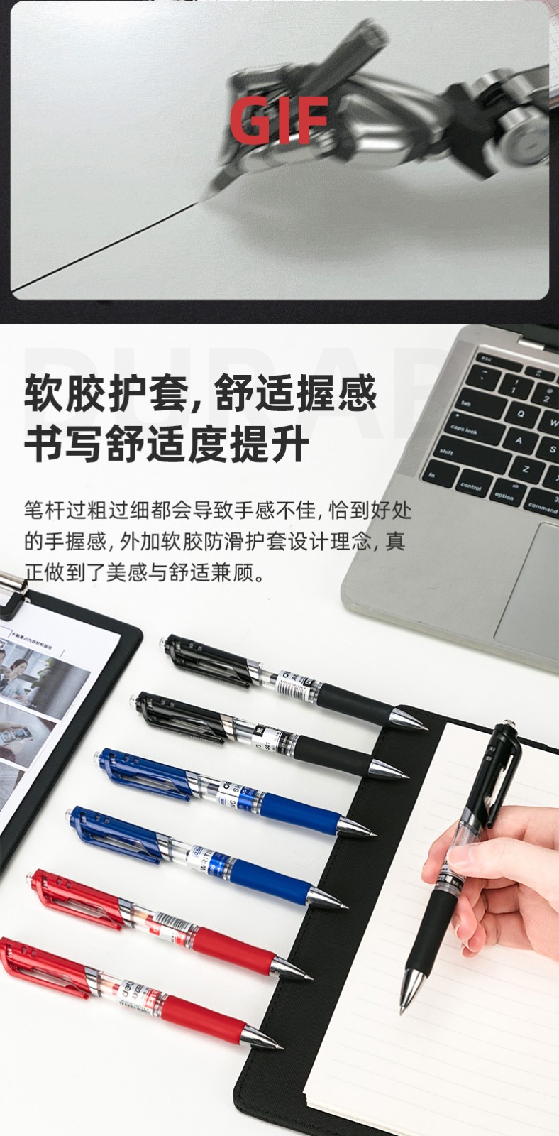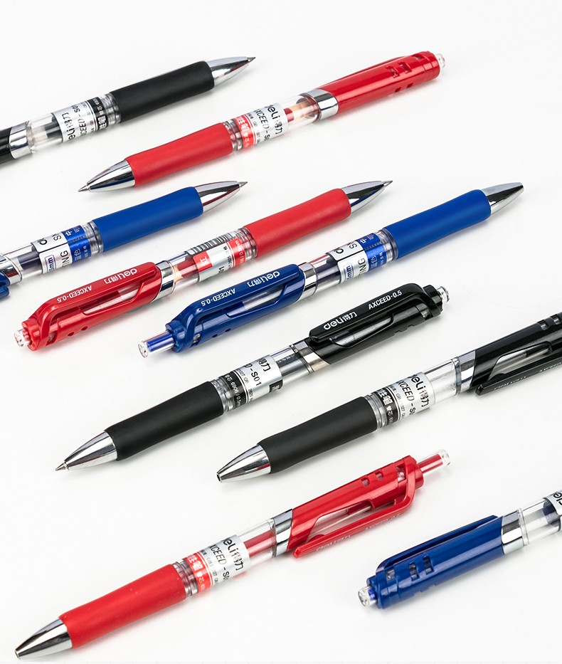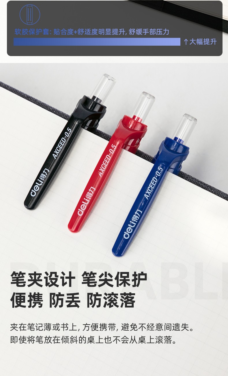 12支黑色-得力按動筆中性筆水筆學(xué)生用考試按壓式子彈頭碳素黑色水性簽字筆芯05mm圓珠筆藍(lán)黑紅筆教師辦公文具用品