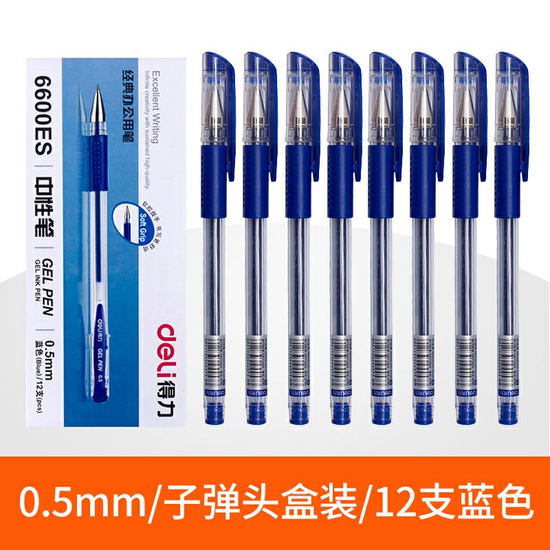 12藍(lán)色-得力文具中性筆學(xué)生用黑色0.5mm子彈頭水筆藍(lán)紅簽字筆批改筆記賬筆辦公用品書(shū)寫(xiě)工具碳素筆50/12支裝