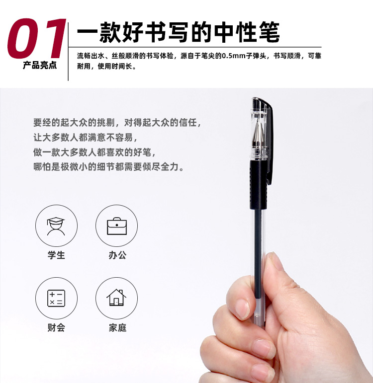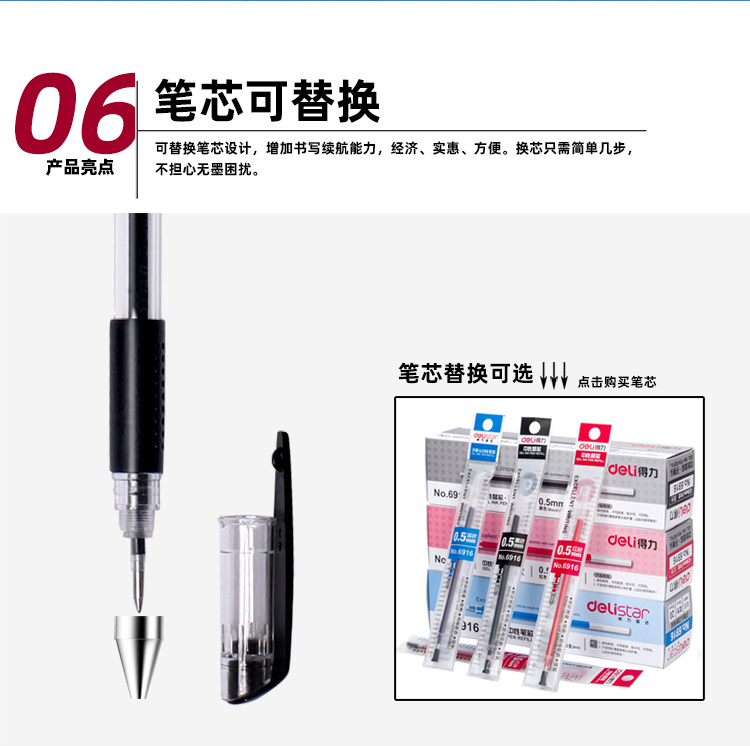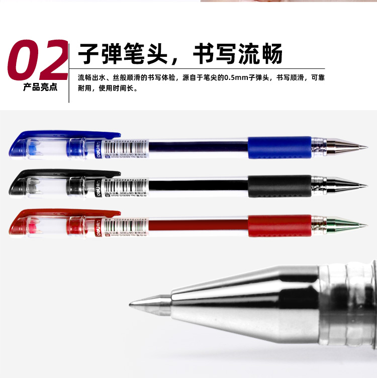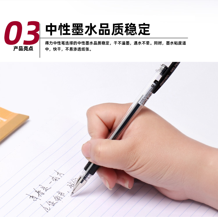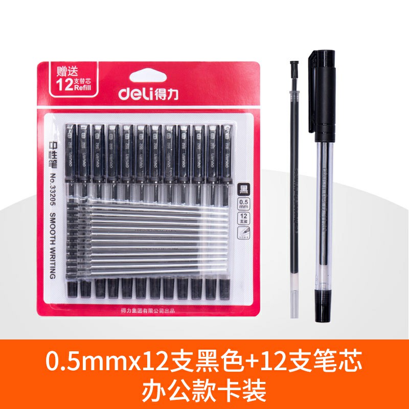12支黑色+12支筆芯-得力文具中性筆學(xué)生用黑色0.5mm子彈頭水筆藍紅簽字筆批改筆記賬筆辦公用品書寫工具碳素筆50/12支裝