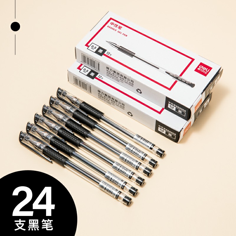 24支黑色-得力中性筆0.5黑色水筆簽字筆碳素筆12支學(xué)生用文具用品藍(lán)黑筆辦公簽名筆水性筆紅筆考試黑筆圓珠筆辦公用品