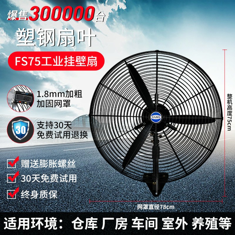 fs75-工業(yè)電風(fēng)扇強力落地扇大風(fēng)量牛角扇商用機械大功率車間工廠壁掛扇
