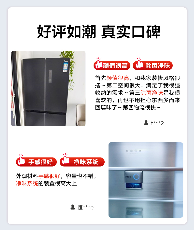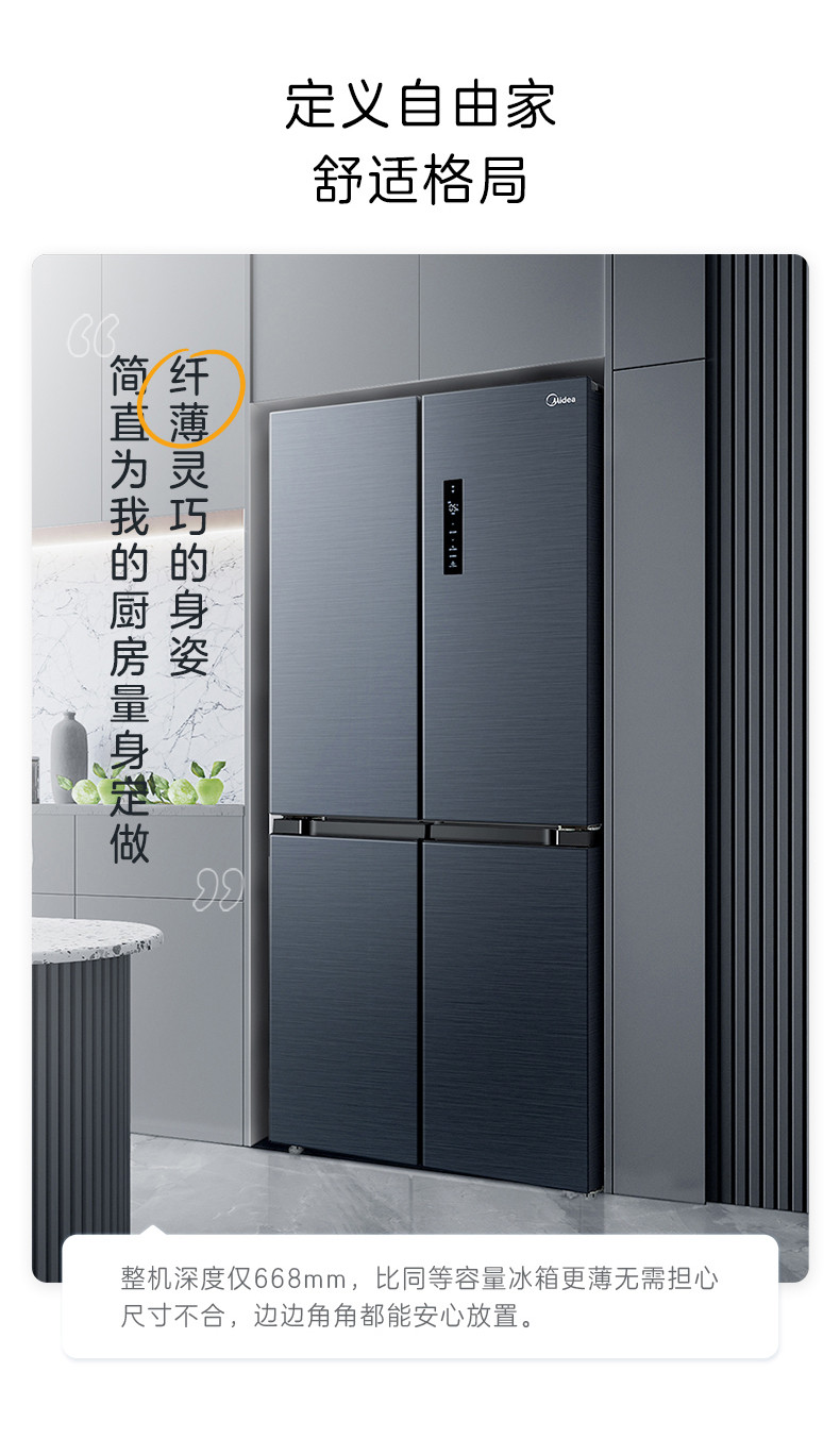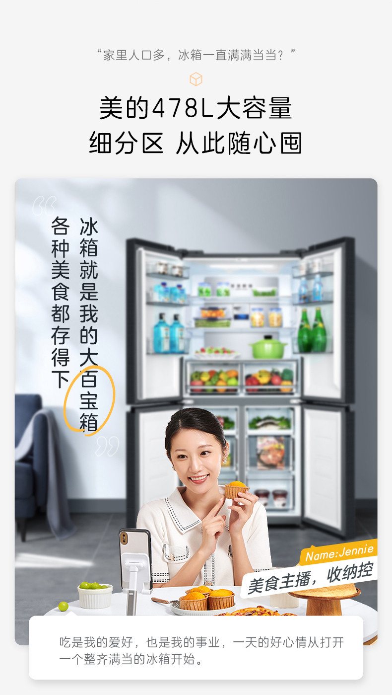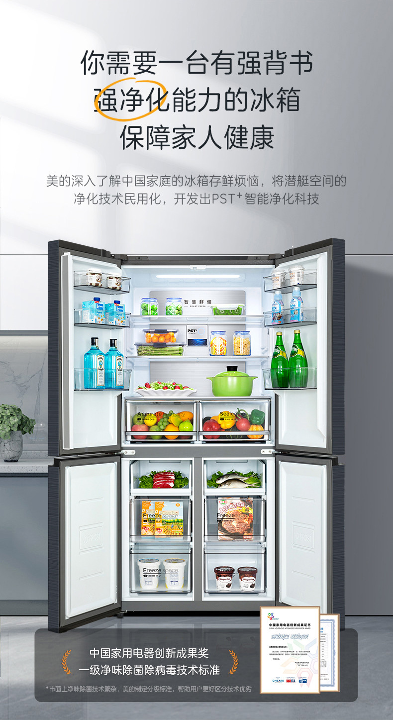 【9分鐘凈味】美的478L十字雙開對開四門大容量智能家用電冰箱