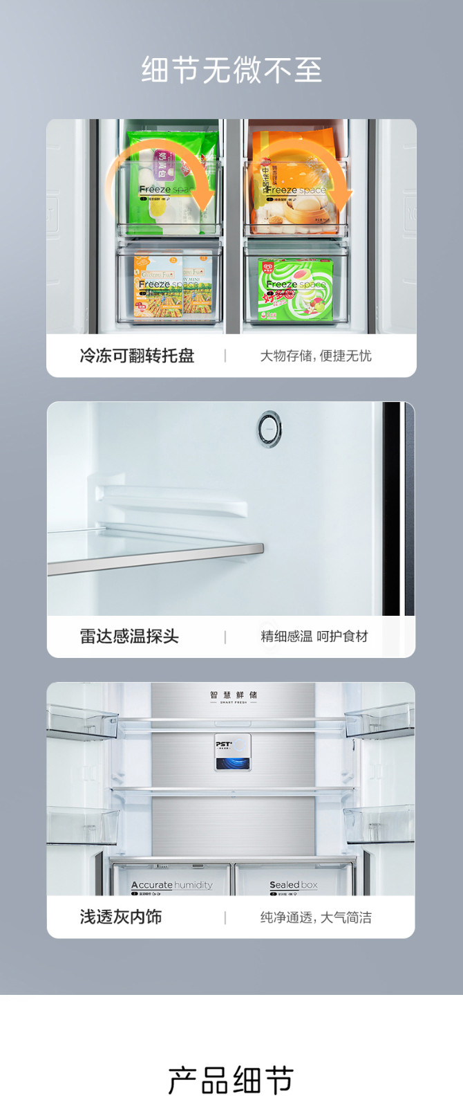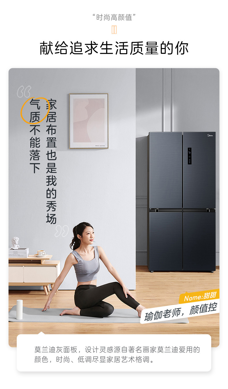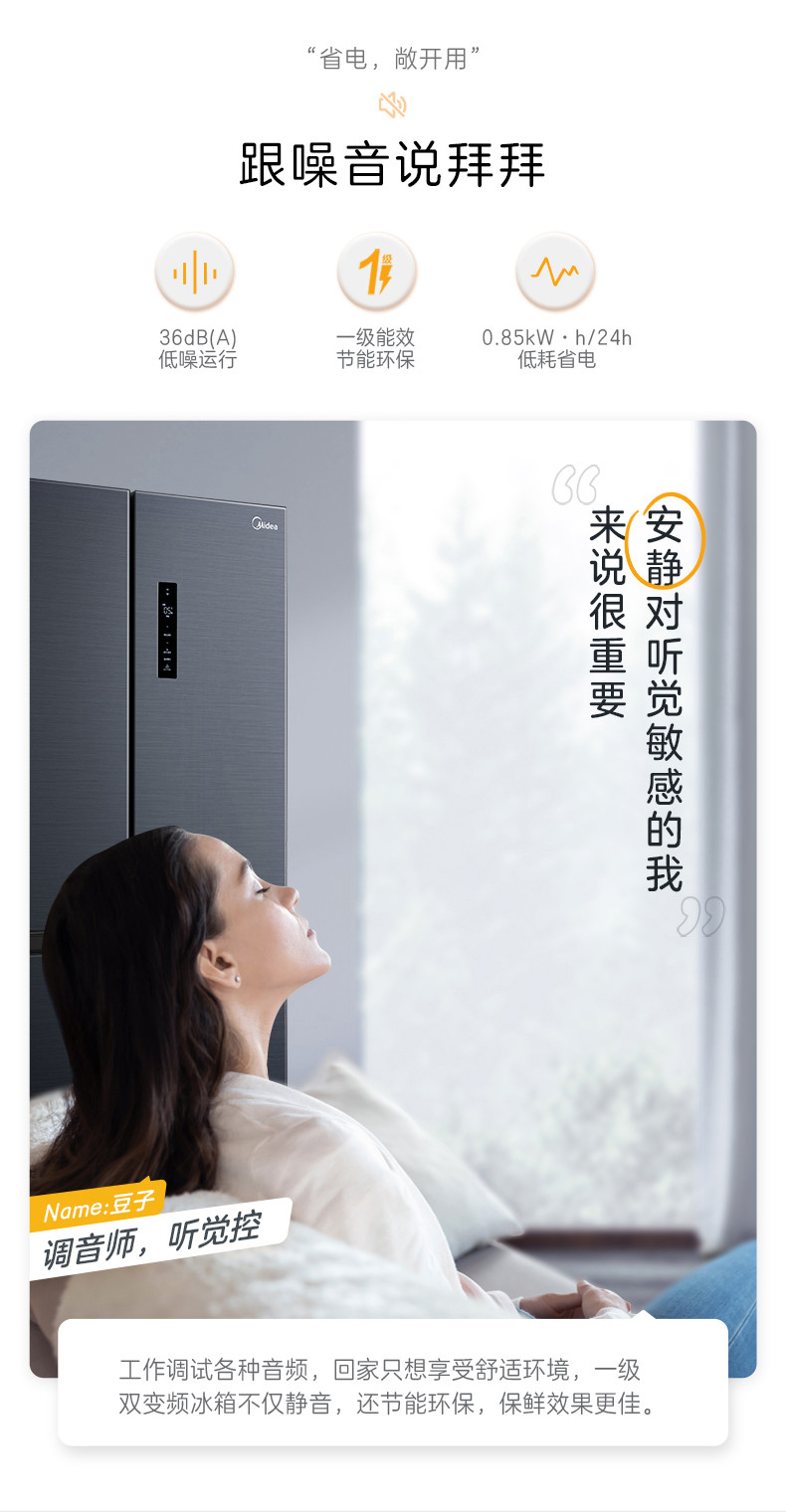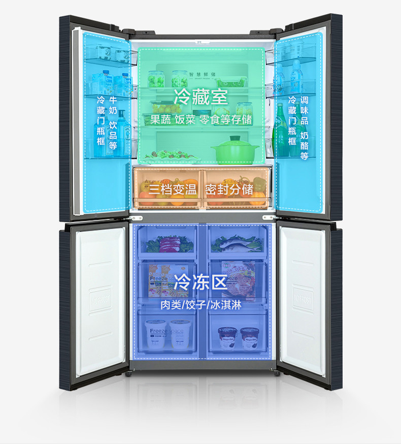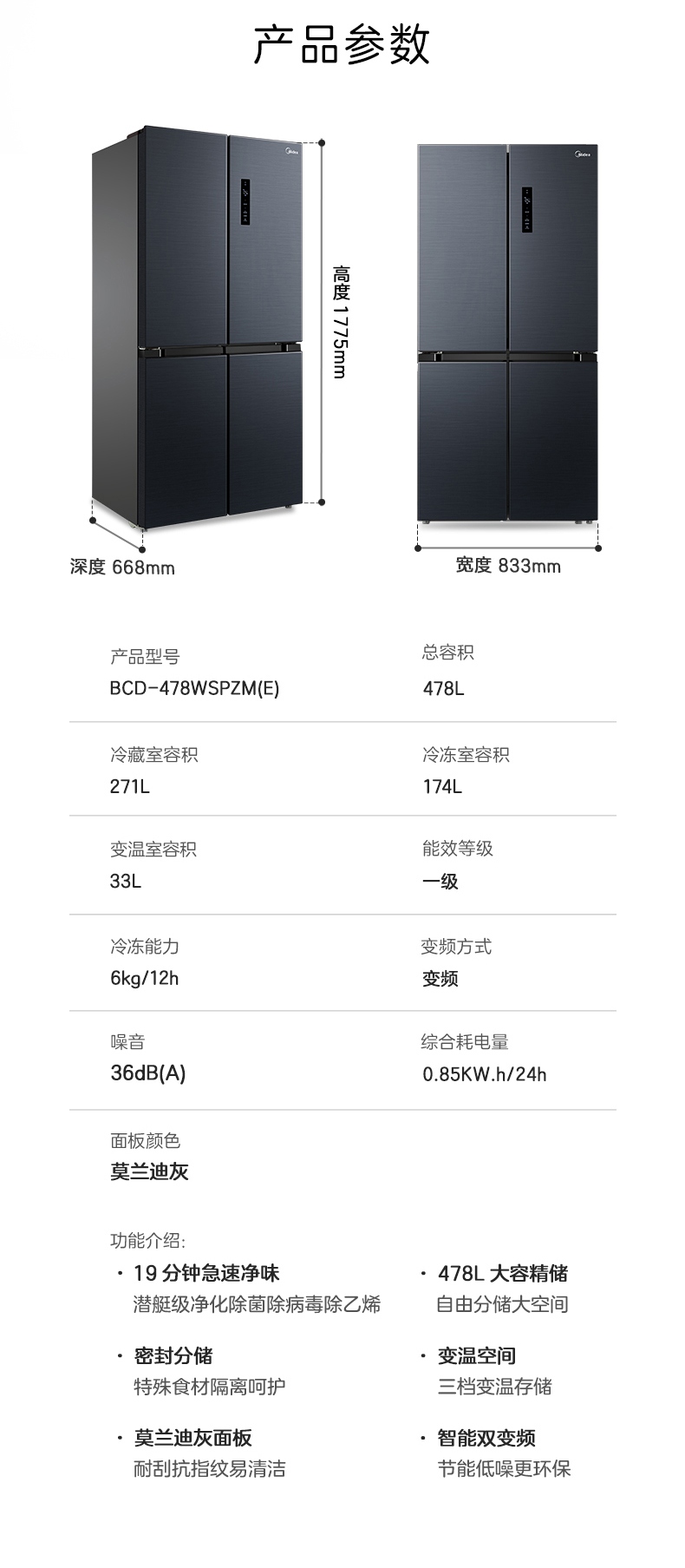 【9分鐘凈味】美的478L十字雙開對開四門大容量智能家用電冰箱