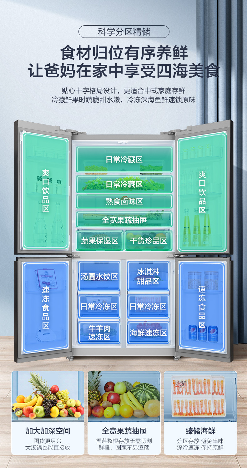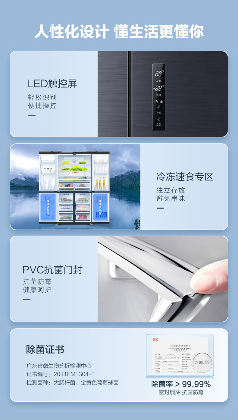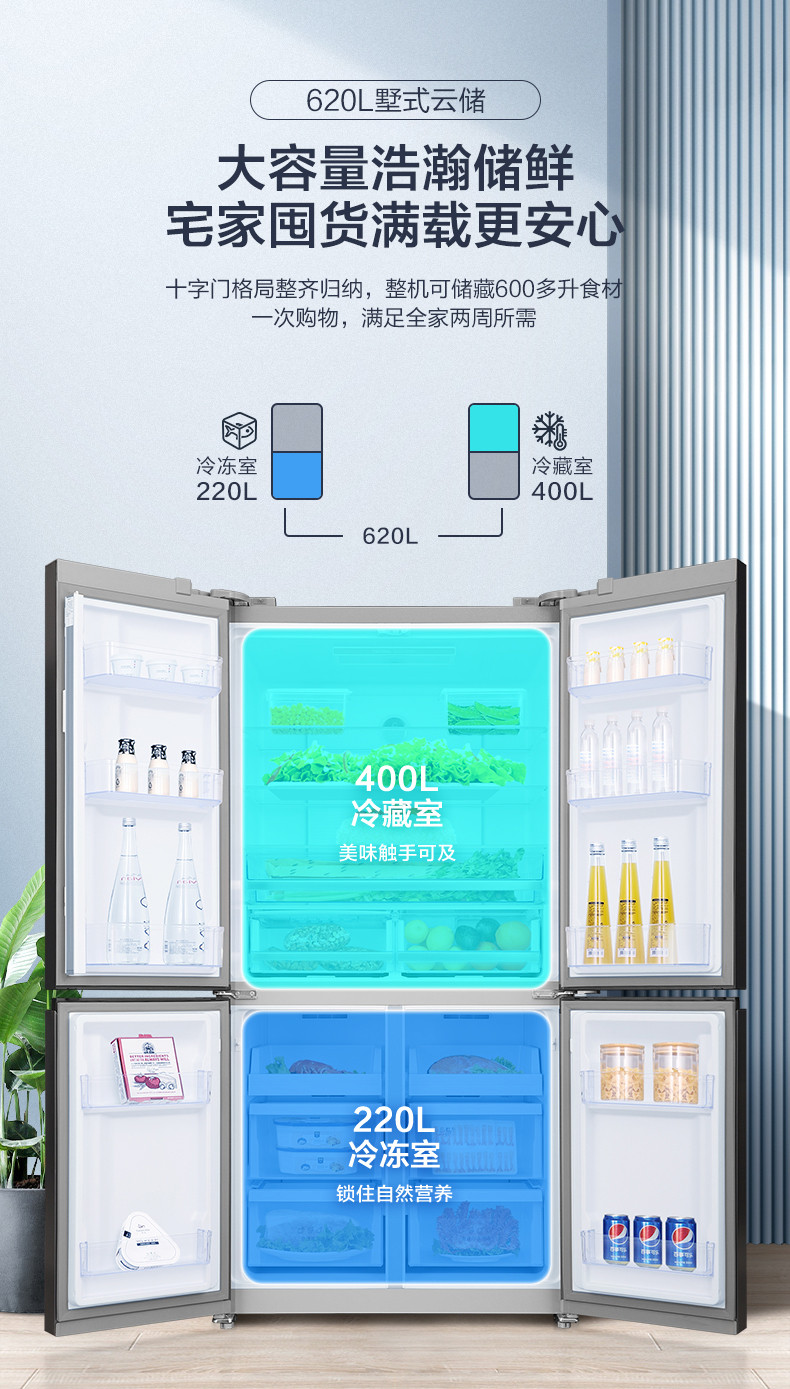 容聲620L十字對開雙開門一級超薄變頻風(fēng)冷無霜冰箱