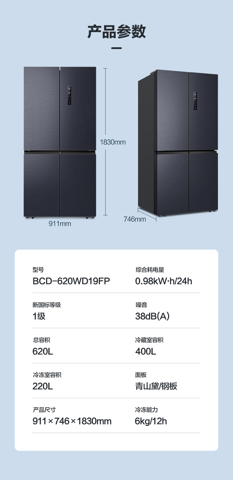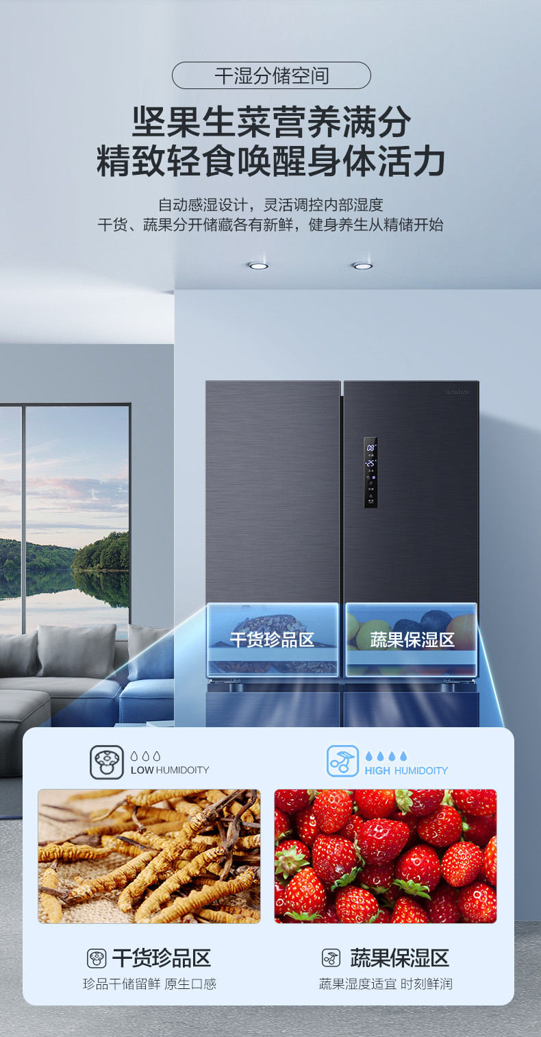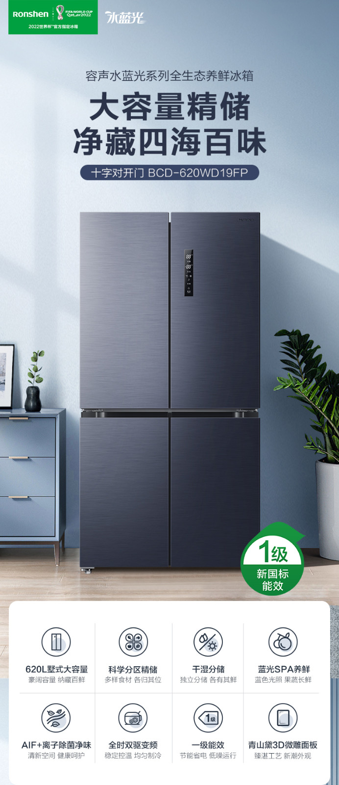 容聲620L十字對開雙開門一級超薄變頻風(fēng)冷無霜冰箱