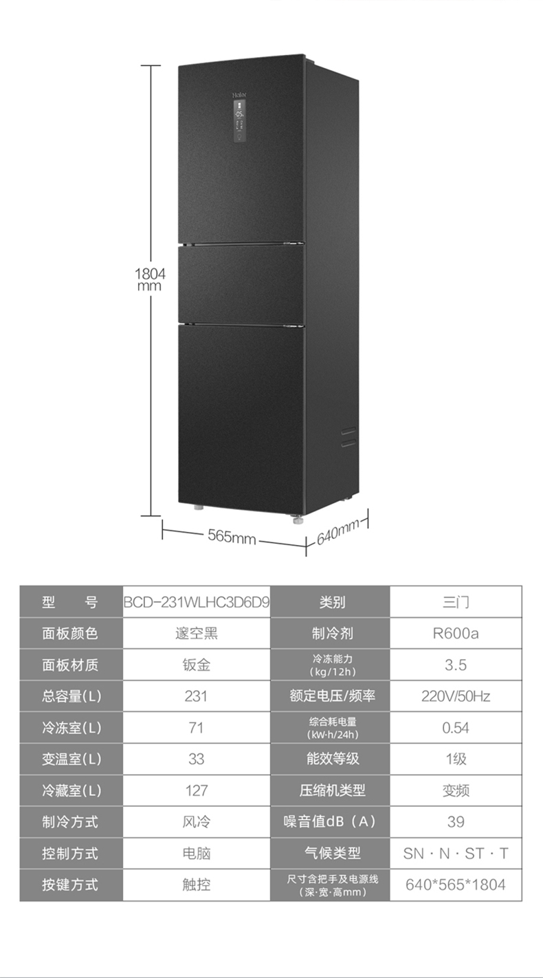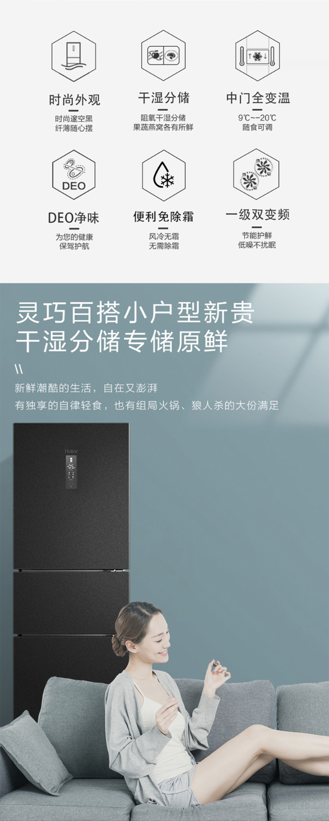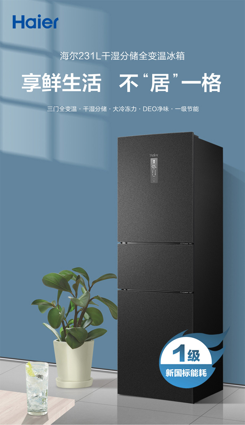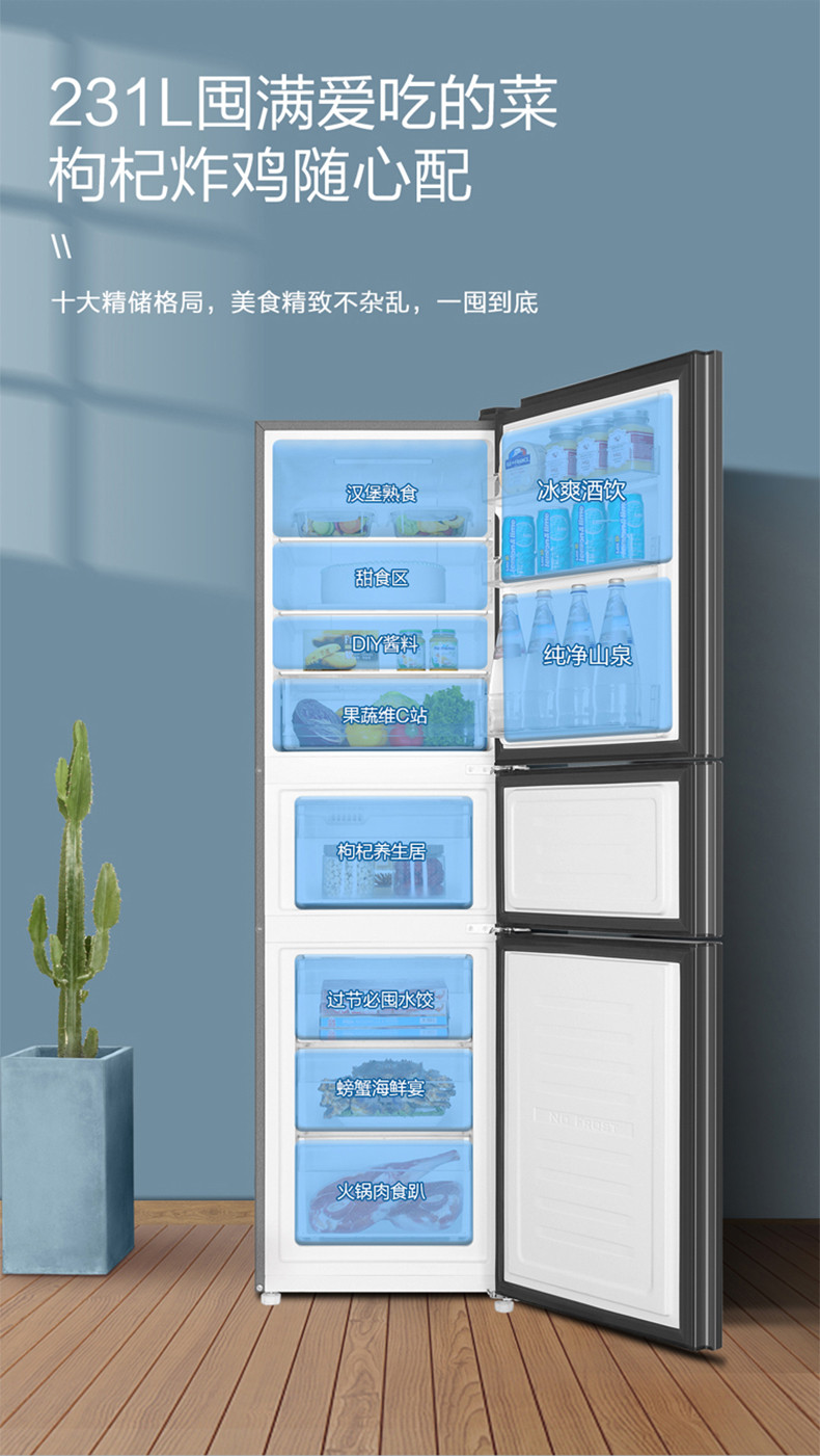 海爾231L三門雙變頻一級節(jié)能風(fēng)冷無霜小型家用租房冰箱海爾231L三門雙變頻一級節(jié)能風(fēng)冷無霜小型家用租房冰箱