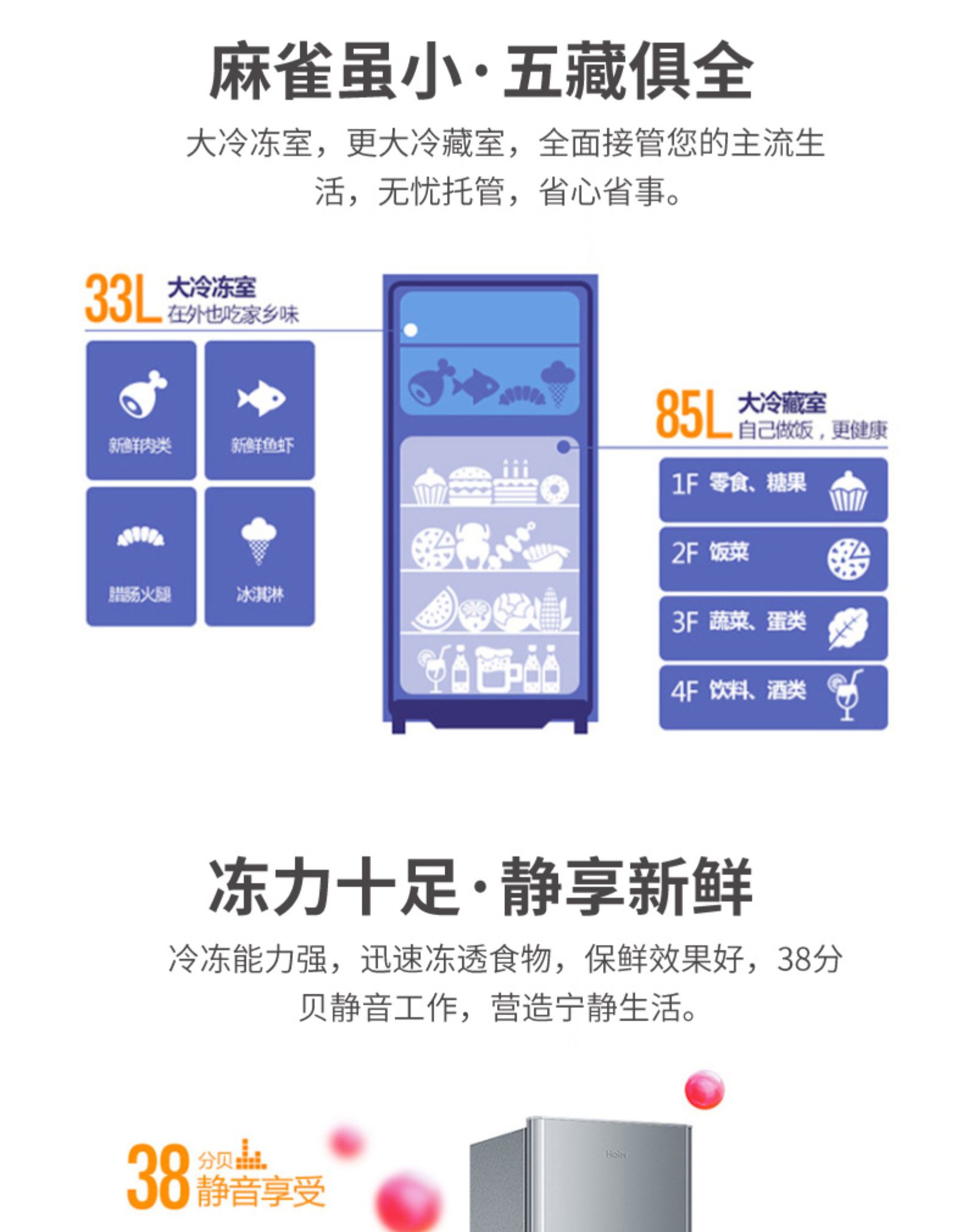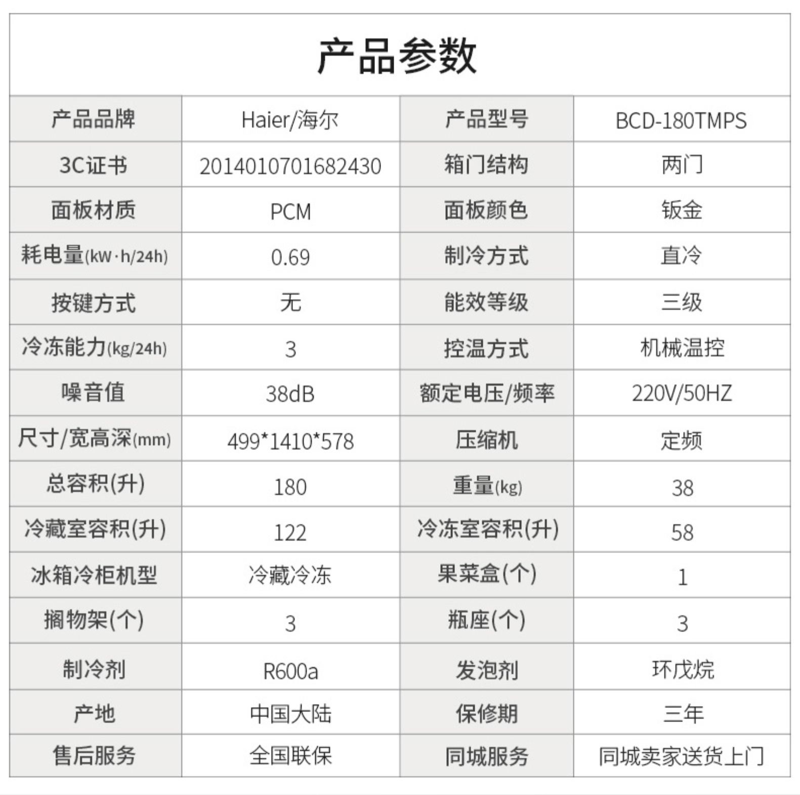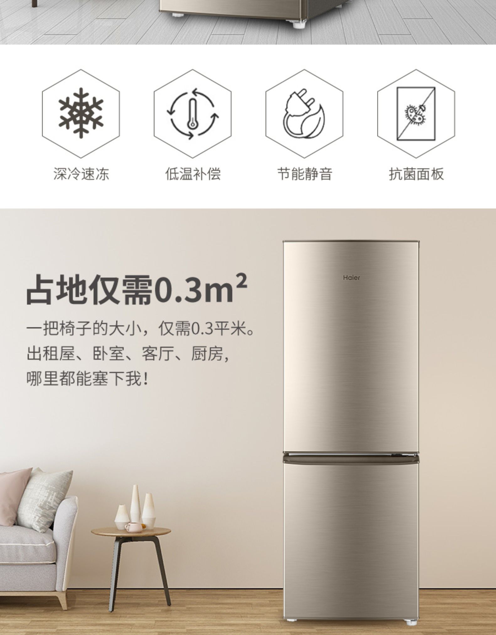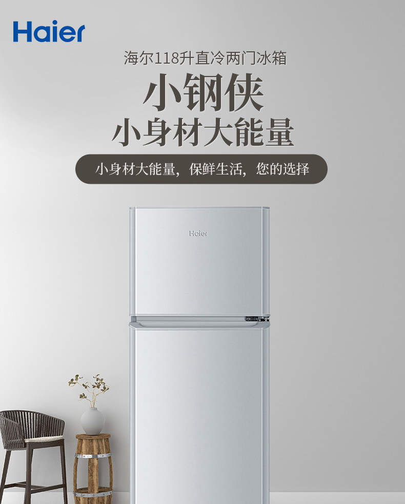 57升-海爾電冰箱兩門180升/118L雙開門家用小型宿舍租房節(jié)能官方旗艦店