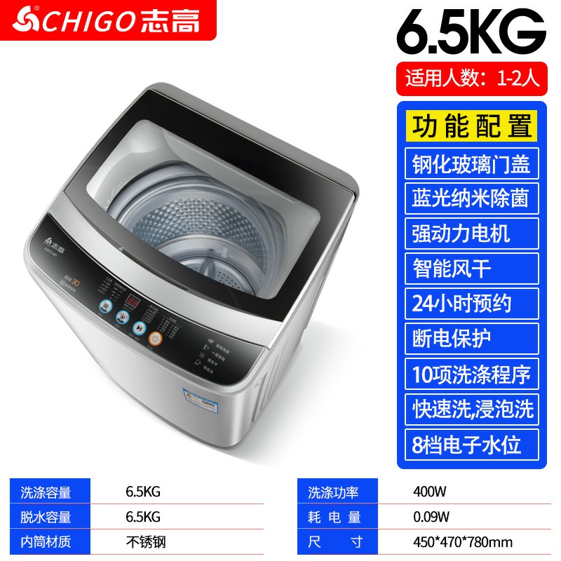 6.5kg-志高7.5KG/8.5洗衣機全自動家用小型宿舍嬰兒童迷你烘干洗脫一體