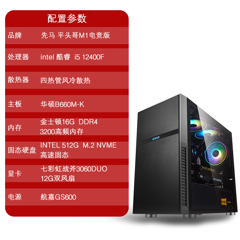 12代i5 12400F 華碩B660M-K 臺式組裝電腦